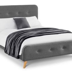 The Astrid fabric bed combines classic Scandinavian design with contemporary light oak splayed legs for a timeless style. Upholseterd in a crisp grey linen with a neatly buttoned headboard.