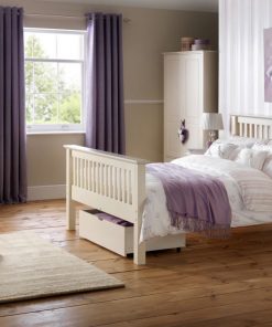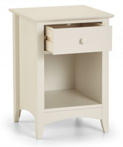 Cameo is a beautiful stone white lacquered bedroom range. Its timeless shaker design is the perfect accompaniment to any interior style and is perfect for grown-up bedrooms and children’s bedrooms alike. Solid pine frames ensure a sturdy and durable construction. The Cameo 1 drawer bedside is well-proportioned and comes with one drawer and a handy storage shelf.
