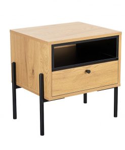 Oak melamine, black powder-coated metal legs and metal accents.