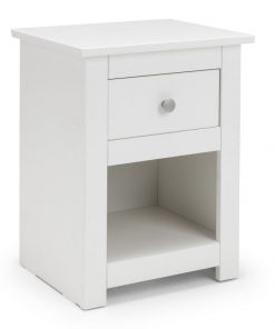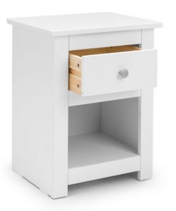 Boasting clean, simple lines the Radley one drawer bedside is perfectly suited for both modern or traditional styles. Featuring one drawer and a shelf to store away essential items at reach from your bedside. Finished in a surf white lacquer, with delicate silver handles, the Radley Bedroom Collection is perfect for adult and kids bedrooms.