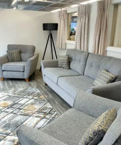 The Ashley is a smart modern range featuring a gently curving teardrop arm, stylish accent cushions finished with a smart button detail in the back cushions.